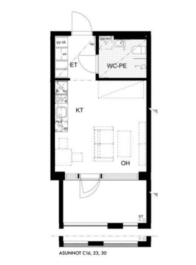 Kerrostalo 1 h + kt + kph + p (1 h + k)