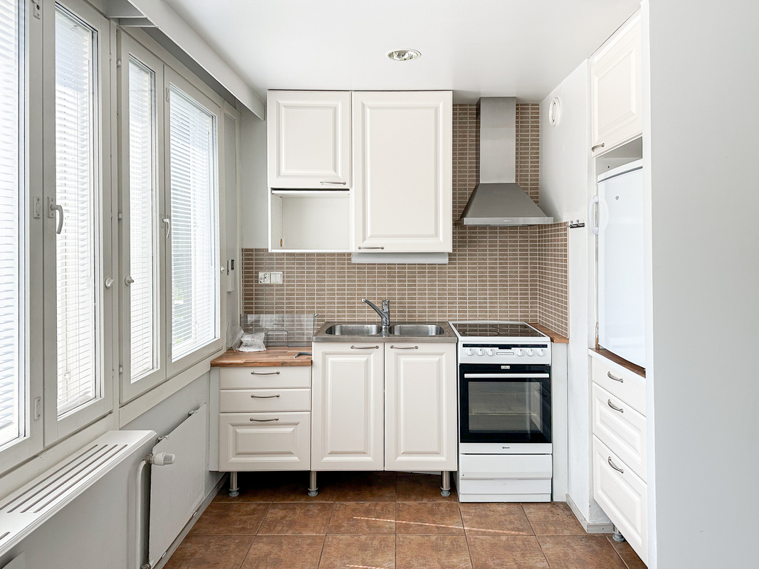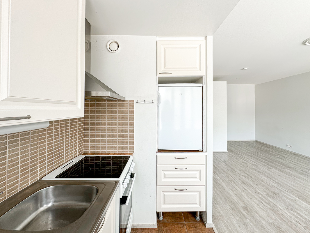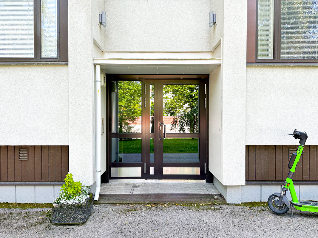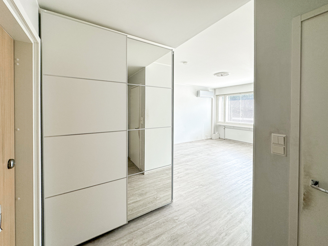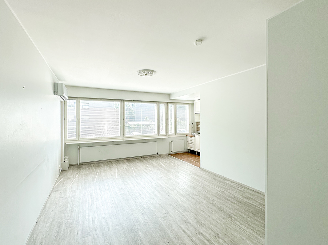 Asunto on katutason yläpuolella, mikä tuo mukavasti yksityisyyttä. Pohjaratkaisu on toimiva kompakti keittokomero, selkeästi rajautuva alkovi ja oleskelutila muodostavat viihtyisän kokonaisuuden. Kykpyhuoneessa on liitäntä pyykinpesukoneelle. Ikkunat avautuvat suojaiselle sisäpihalle ja ilmalämpöpumppu lisää asumismukavuutta.