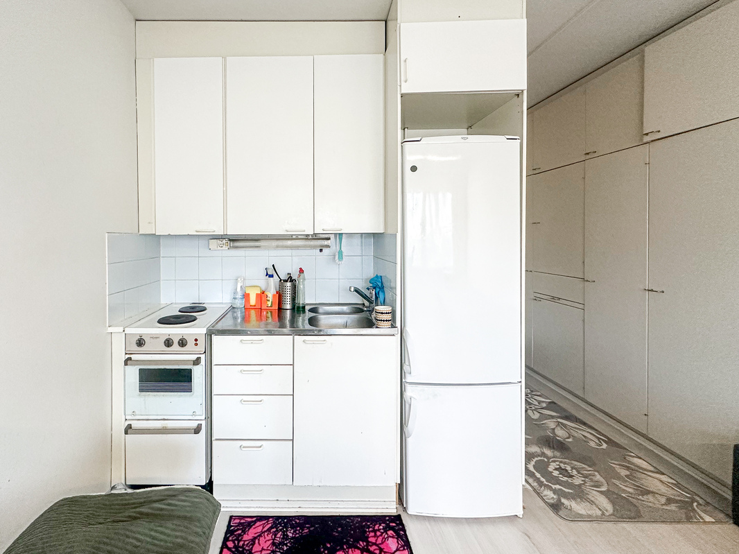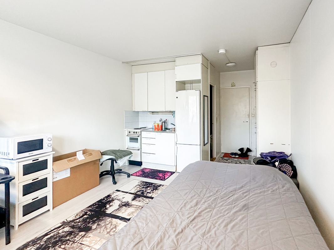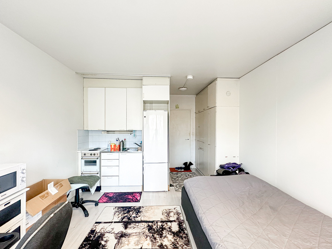 Viihtyisä ja toimivapohjainen yksiö, jossa arki rullaa mutkattomasti. Asunnossa on valoisa olohuone avokeittiöllä, joka muodostaa yhtenäisen ja käytännöllisen oleskelutilan. Keittiöstä löytyy kaikki tarpeellinen sujuvaan arkeen.