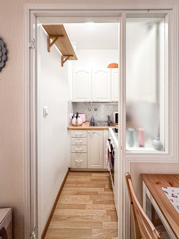Viehättävä ja viihtyisä pikkukoti, suurella lasitetulla parvekkeella.
