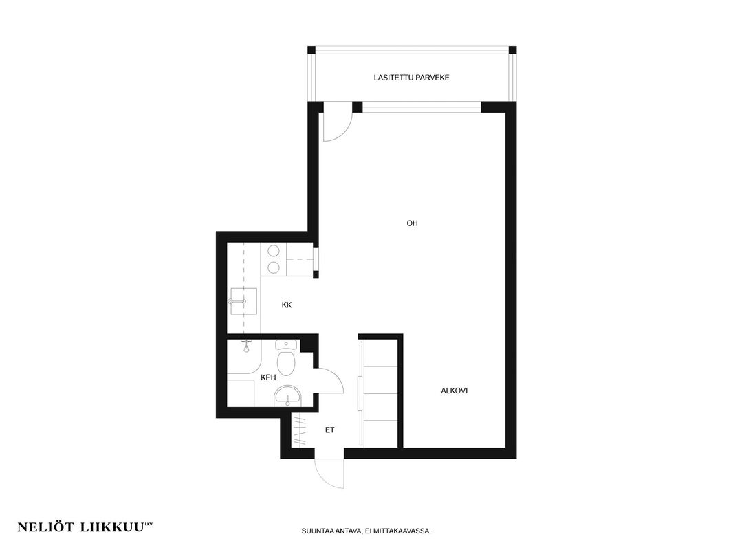 | Huoneistoselitelmä | 1h, kk, kph, lasitettu parveke |