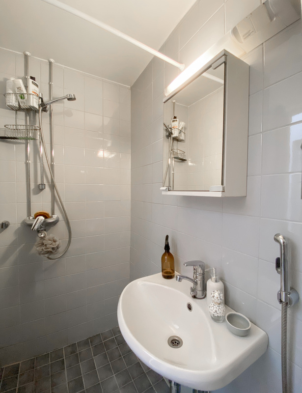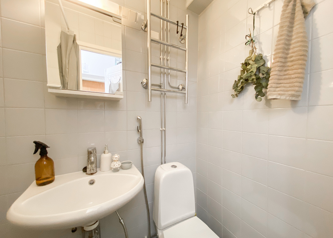 Yhtiö on läpikänynyt putkiremontin ja kylpyhuone on ajattoman vaalea.