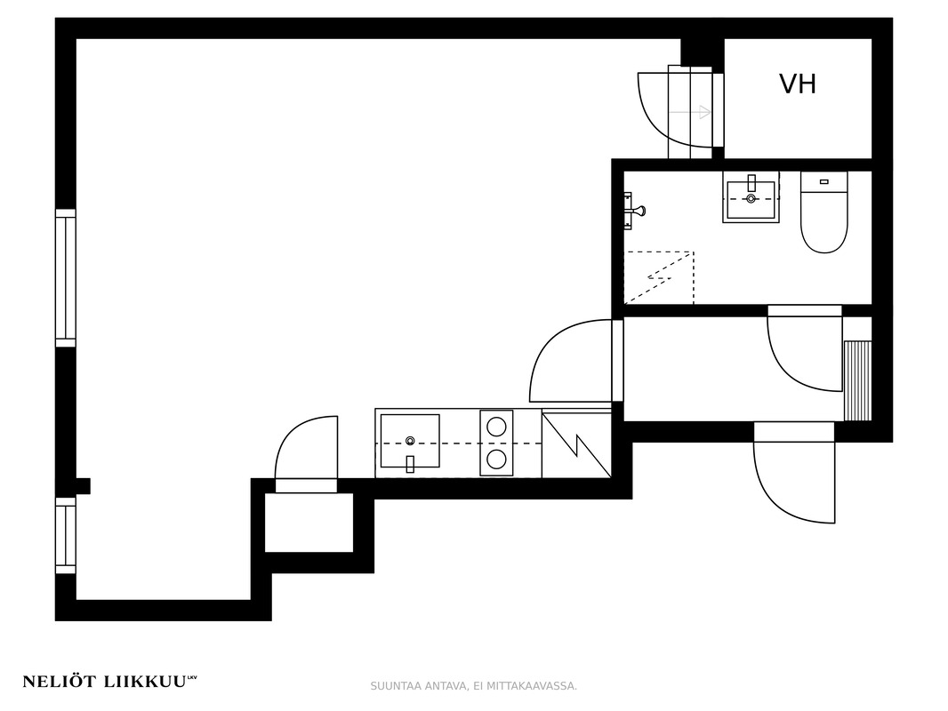 Asunnon uniikkina yksityiskohtana ja katseenkääntäjänä toimii keittiötilan viereen sijoittuva soppi. Tämä toimii erinomaisesti esimerkiksi etätyötilana – vaatehuoneena tai vaikkapa paraatipaikkana viherkasveille! Ikkuna takaa runsaan valon.