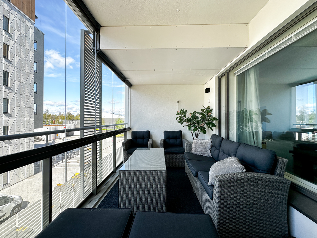 Sijainti on mitä mainioin, sillä metro löytyy aivan kulman takaa kuin myös lähikauppa. Useampi ravintola on myös vieressä. Mainiot liikuntamahdollisuudet kuten urheilupuisto, urheiluhalli sekä kuntosali ovat myös muutaman askeleen päässä. Vehreitä ulkoilumaastoja on myös alueella joten alue tarjoaa monipuolisesti kaikkea.