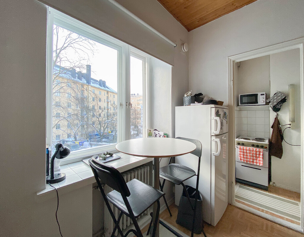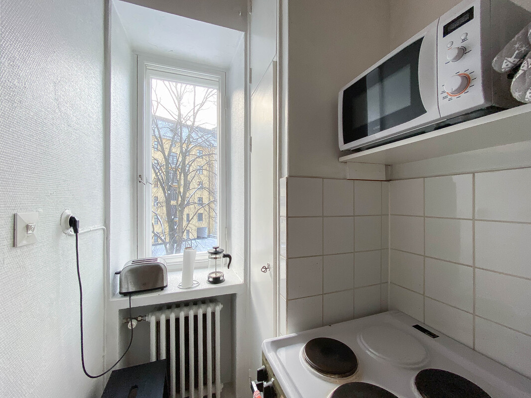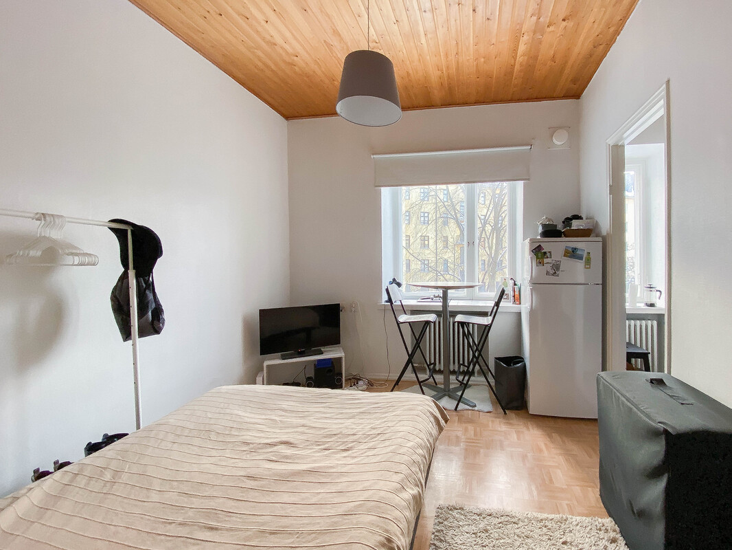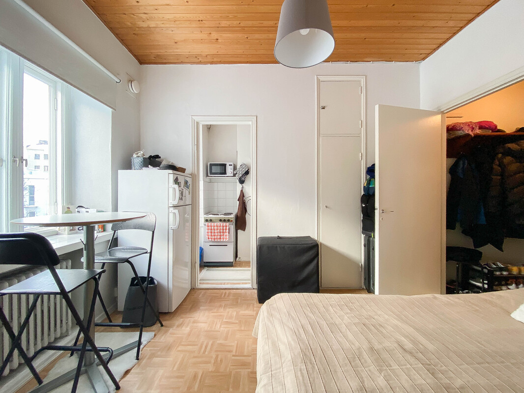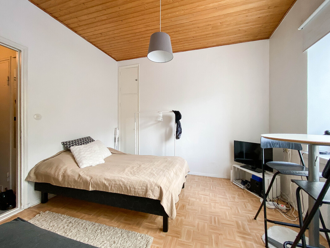 Etsitkö kaupunkikotia toimivalta ja viihtyisältä sijainnilta? Tämä koti pitää sisällään kompaktin, mutta toimivan pohjaratkaisun. Huoneessa on hyvin tilaa niin sängylle kuin esimerkiksi pienelle ruokailuryhmälle. Ikkunoista on kauniit näkymät sisäpihan suuntaan. Huoneen yhteydessä on ikkunallinen keittokomero. Kylpyhuone on tilava ja varustettu pyykinpesukoneliitännällä, joten pyykkihuolto hoituu hyvin kotoa käsin. Neutraalit pintamateriaalit antavat hyvän pohjan sisustukselle! Taloyhtiöstä löytyy pyöräkellari.