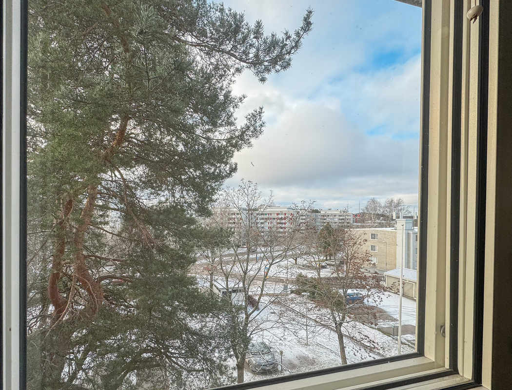 Asunto sijaitsee talon ylimmässä kerroksessa, mikä takaa rauhallisen asumisen ja mukavat näkymät.