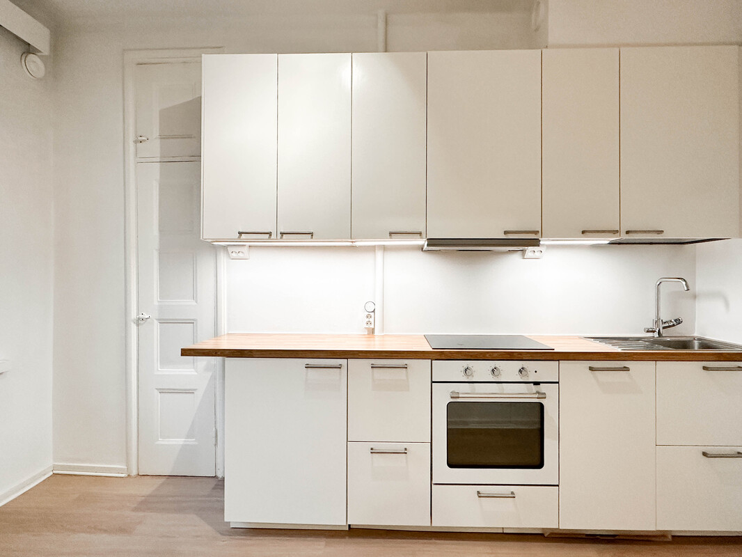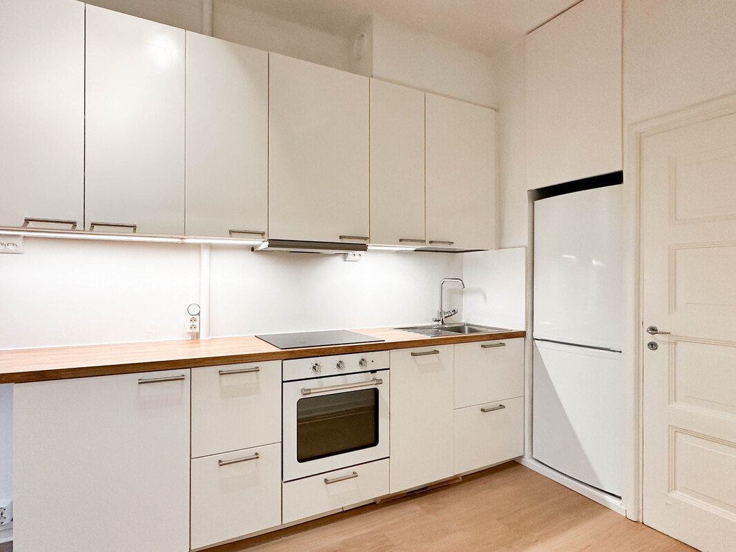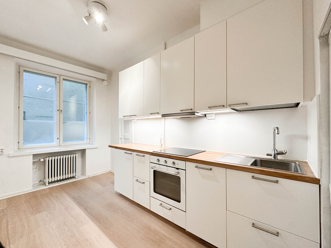 Tämä koti huokuu kodikkuutta ja kivitalon henkeä. Tunnelmallinen vaalea lattia ja suuret ikkunat leveine ikkunalautoineen luovat kivitalon henkeä. Harmonisen vaalea värimaailman ansiosta asunto on helppo sisustaa mieleisekseen. Tilavassa huoneessa on hyvin tilaa niin sängylle kuin oleskeluun. Modernissa keittiössä on mukavasti kaappitilaa, astianpesukone ja siellä on oiva paikka ruokailuryhmälle ikkunan ääressä. Eteisen käytävän päässä on kulku laatoitettuun kylpyhuoneeseen, joka on varustettu pyykinpesukoneella.
