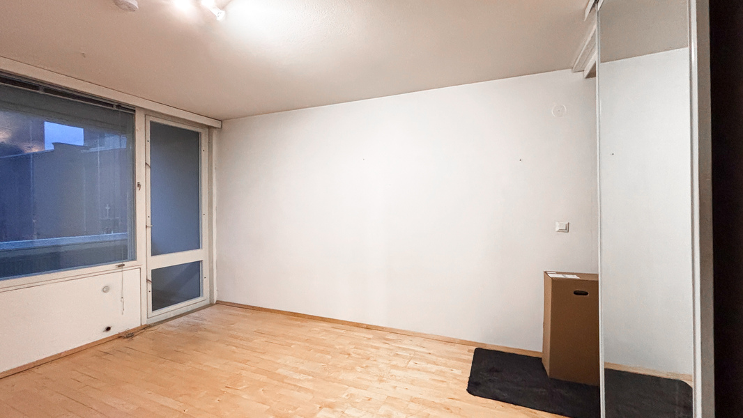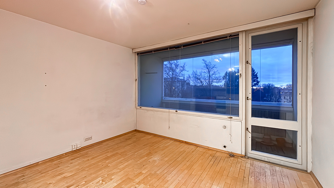 Heti asuntoon astuttaessa huomaa, miten suuret ikkunat tekevät tilasta avaran ja kutsuvan. Eteisessä on käytännöllinen naulakko ulkovaatteille, ja asuinhuoneen suuren liukuoven takaa löytyy tilava vaatekaappi, johon mahtuu hyvin vaatteita ja muuta säilytettävää. Kompakti keittiö on toimiva arjessa, sillä se tarjoaa riittävästi kaappi- ja laskutilaa ruoanlaittoa varten. Asunnon ehdoton helmi on lasitettu parveke, josta avautuu näkymä vehreään Tehtaanpuistoon – täydellinen paikka aamukahville tai iltahetkille.