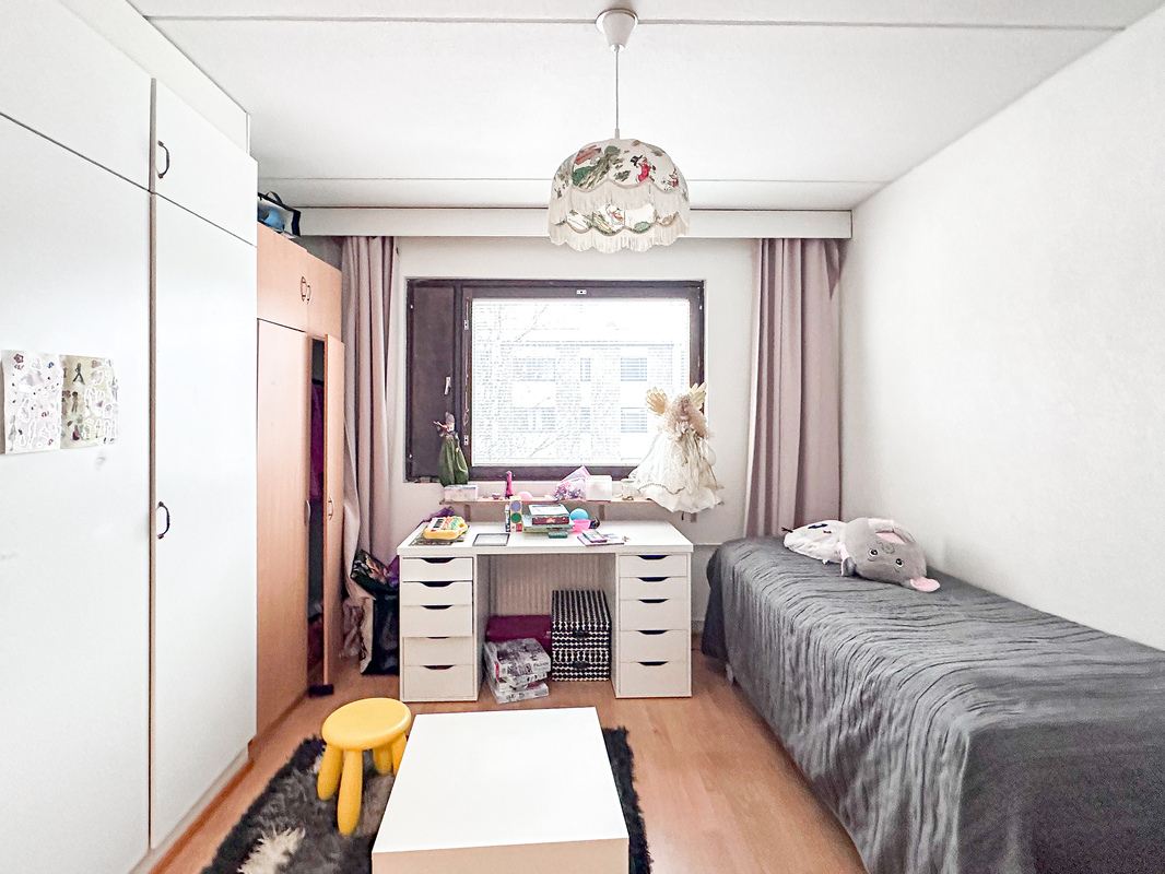 Talon ylimmän kerroksen kodissa on selkeä pohjaratkaisu, joka tekee kokonaisuudesta käytännöllisen ja helposti sisustettavan. Kodin tilavat huoneet antavat runsaasti mahdollisuuksia luoda omannäköinen koti.