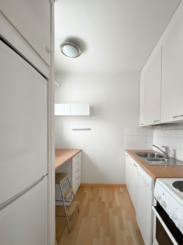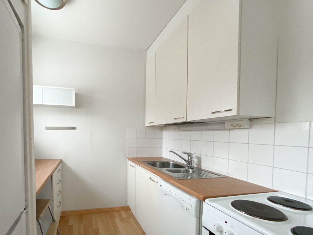 Asunnossa on vaatehuone, erillinen keittiö sekä tilavat huoneet. Keittiöstä löytyy astianpesukone ja kylpyhuoneessa pesukone valmiina. Pieni ja rauhallinen taloyhtiö, jossa juna-asema kadun toisella puolella.