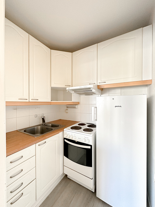 Kompaktista keittokomerosta löytyy kaikki tarvittava ruoanlaittoon. Olohuone on valoisa ja siitä ovi ranskalaiselle parvekkeelle. Makuuhuoneesta löytyy runsaasti kaappitilaa. Kylpyhuone on nykyaikainen ja siellä pesukoneliitäntä.
