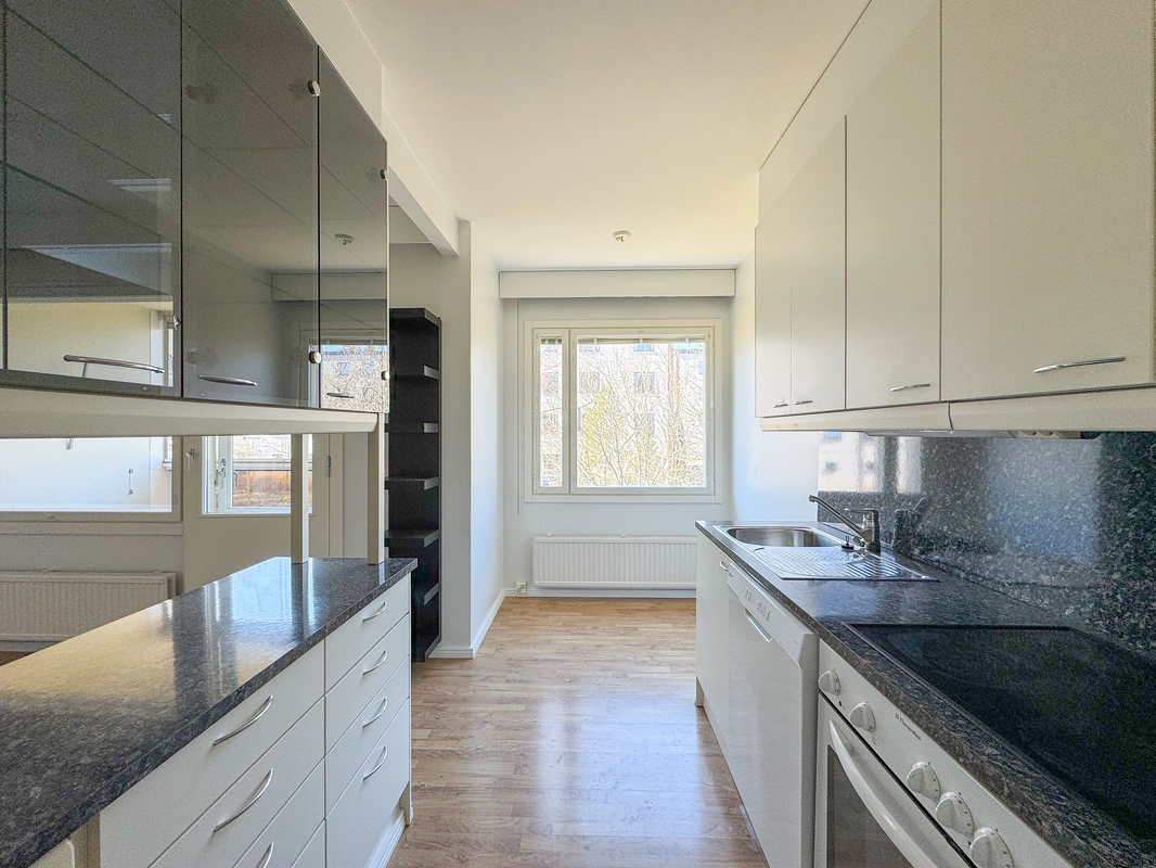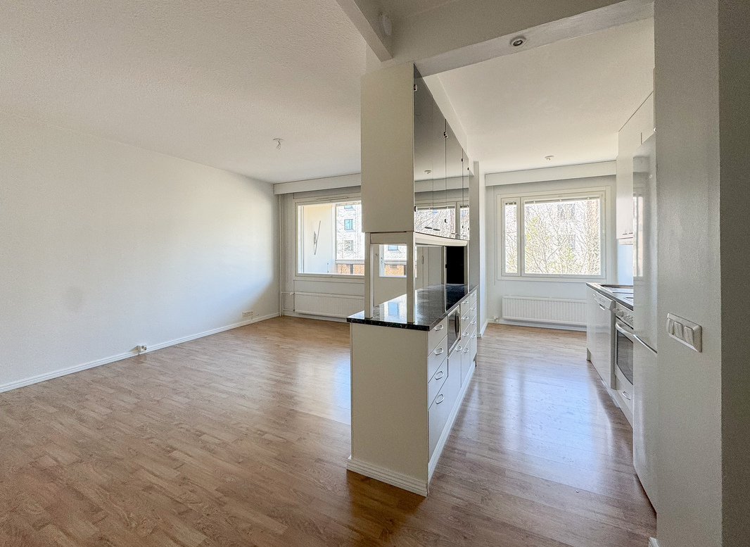 Huoneisto hurmaa heti sisäänastuessa avaralla ja raikkaan vaalealla tunnelmallaan. Täältä löytyy kaikki mitä mukavaan asumiseen tarvitsee!