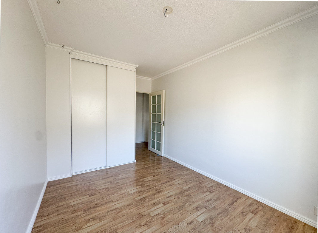 Makuuhuoneessa on mukavasti kaappitilaa eteisen kaapistojen lisäksi.