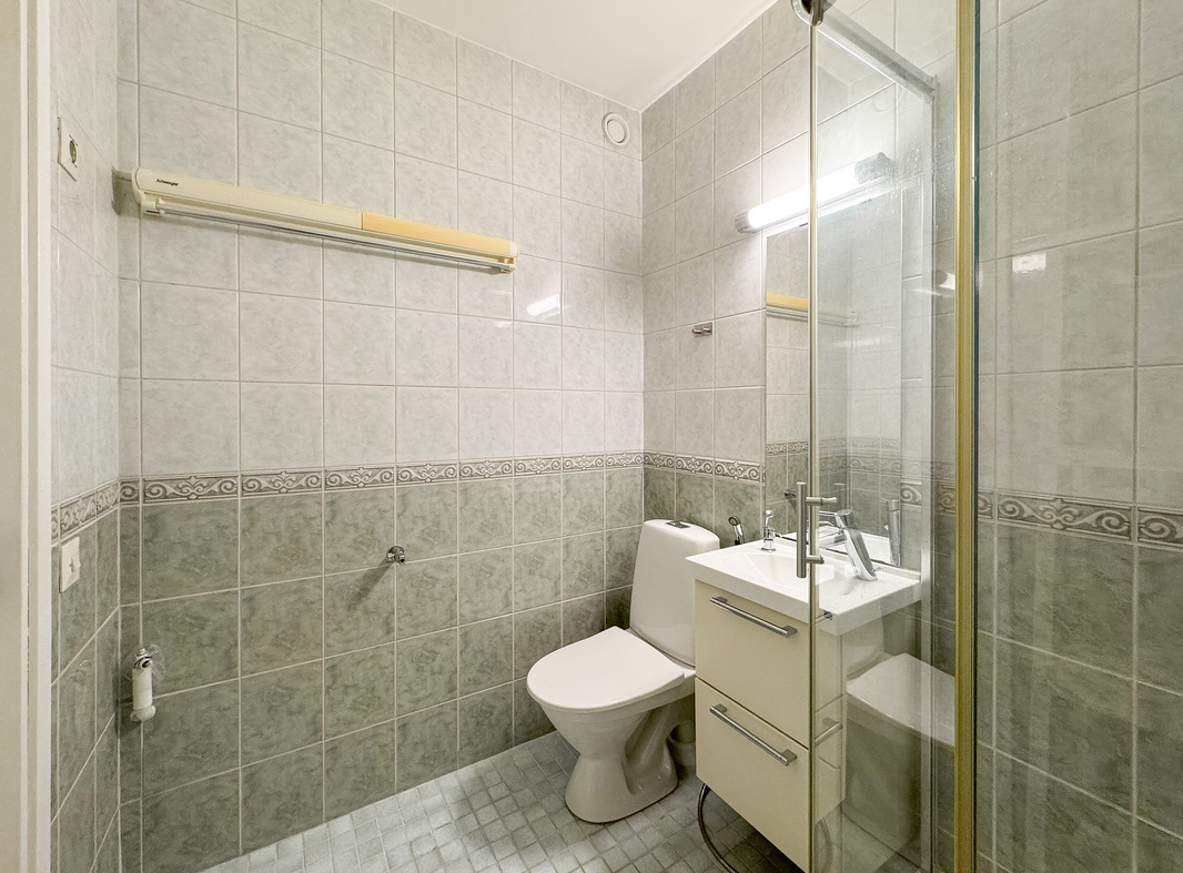 Tilavasta kylpyhuoneesta löytyy myös liitäntä pyykinpesukoneelle.