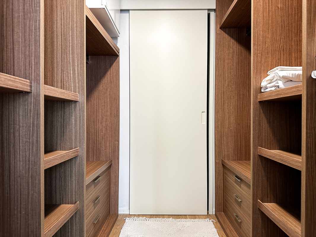 Vaatehuoneesta pääsee myös kylpyhuoneeseen