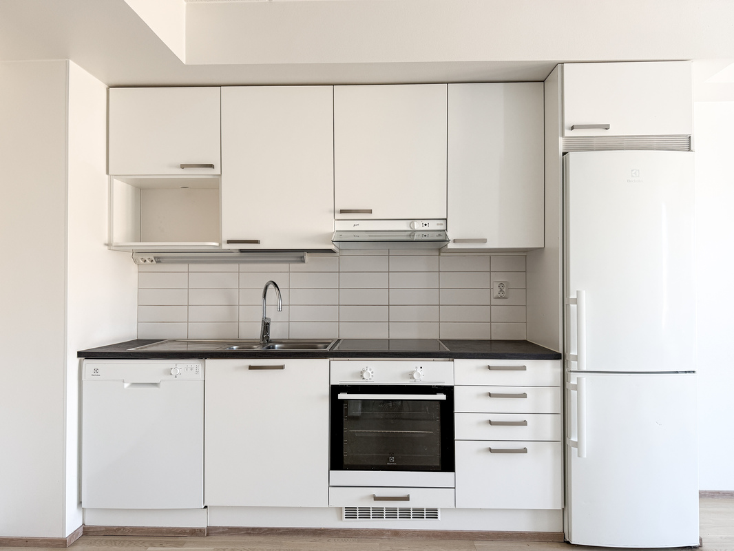 Keittiö on hyvässä kunnossa ja täältä löytyy kaikki tarvittavat varustelut kuten astianpesukone. Kaappi,- sekä laskutilaa on myös hyvin.