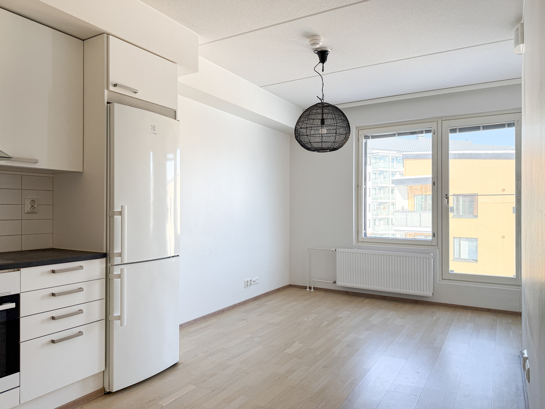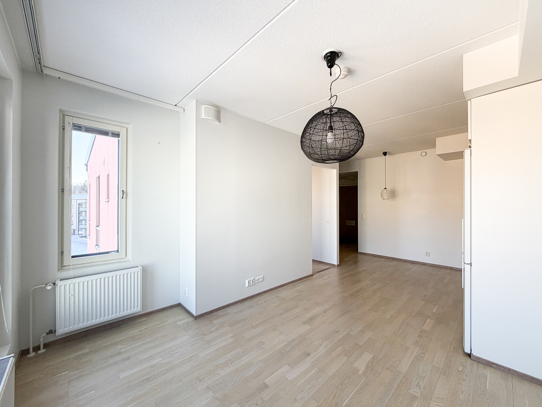 Olohuone on tilava ja tämän saat helposti sisustettua mieleiseksesi. Vaaleat pintamateriaalit sopivat jokaiseen sisustukseen, joten saat tästä tyhjän pohjan luoda itsellesi mieluisa koti.
