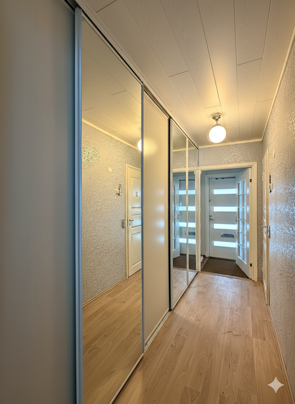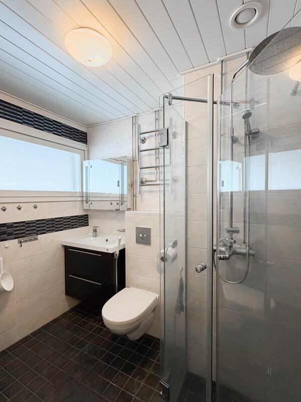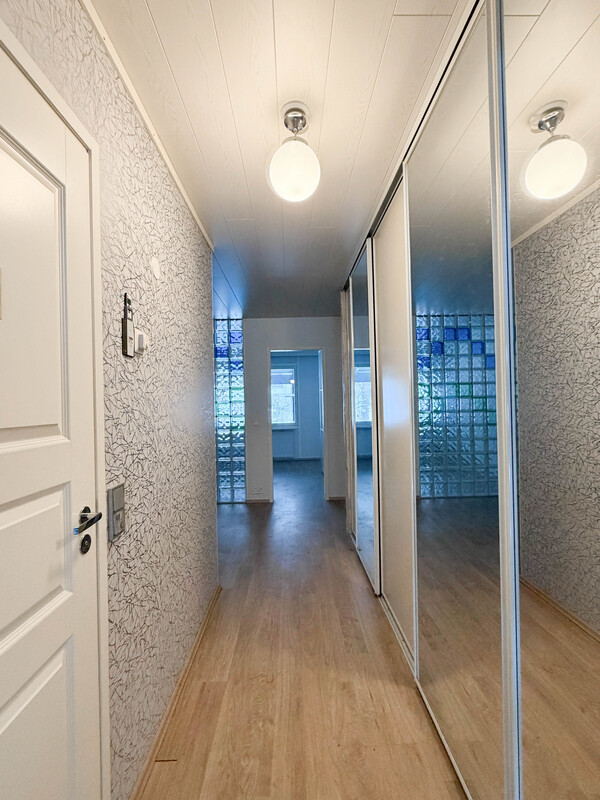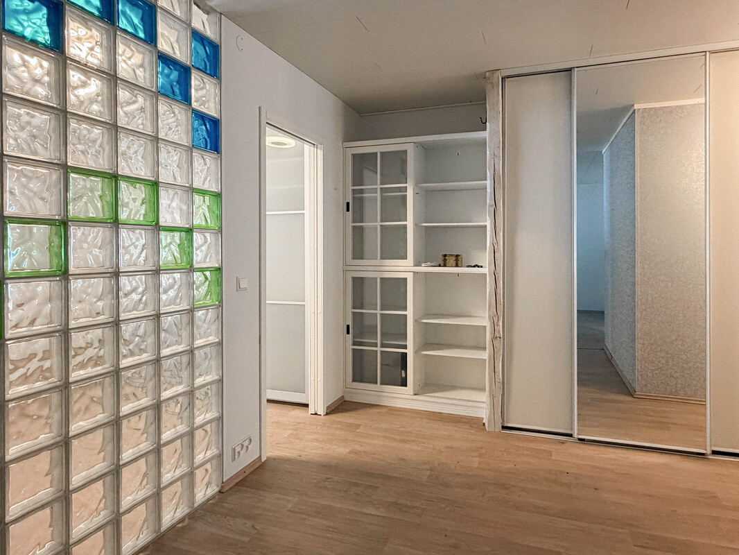 Säilytystilaa on runsaasti: tilava eteiskäytävä kaapistoineen takaa järjestystä arkeen. Kookas makuuhuone mahdollistaa vaivattomasti myös työpisteen sijoittamisen. Kylpyhuoneen yhteydessä on myös pieni sauna.