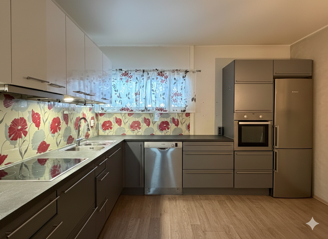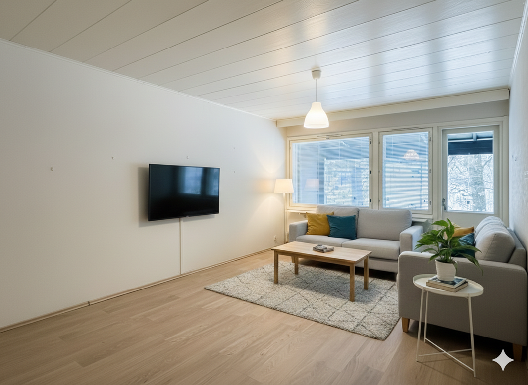Tämä poikkeuksellisen tilava päätyhuoneisto vakuuttaa erinomaisella pohjaratkaisullaan, läpitalon valoisuudellaan ja käytännöllisyydellään.