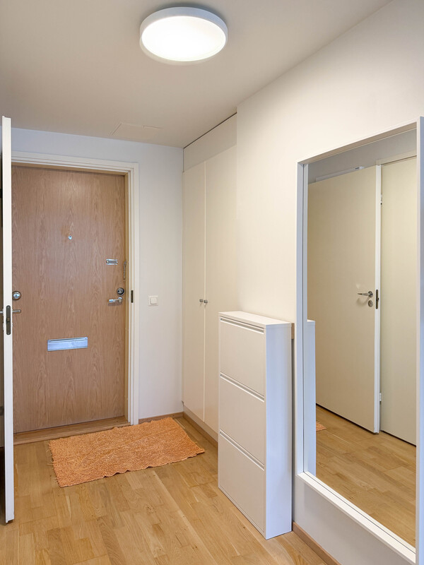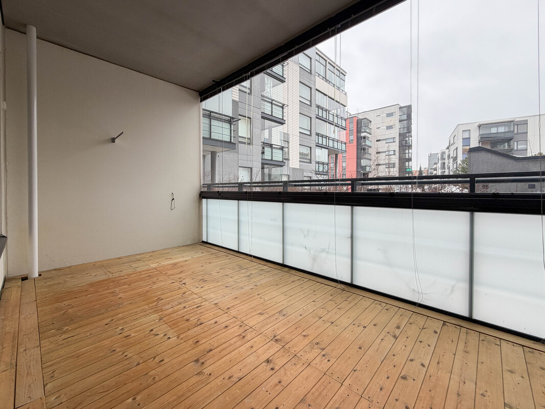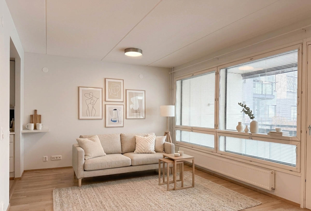 Tyyliä huokuva koti ensimmäisestä kerroksesta omalla saunalla sekä lasitetulla parvekkeella.