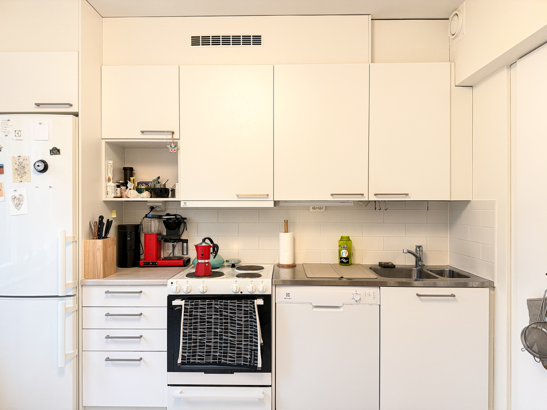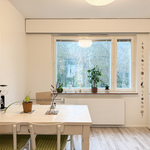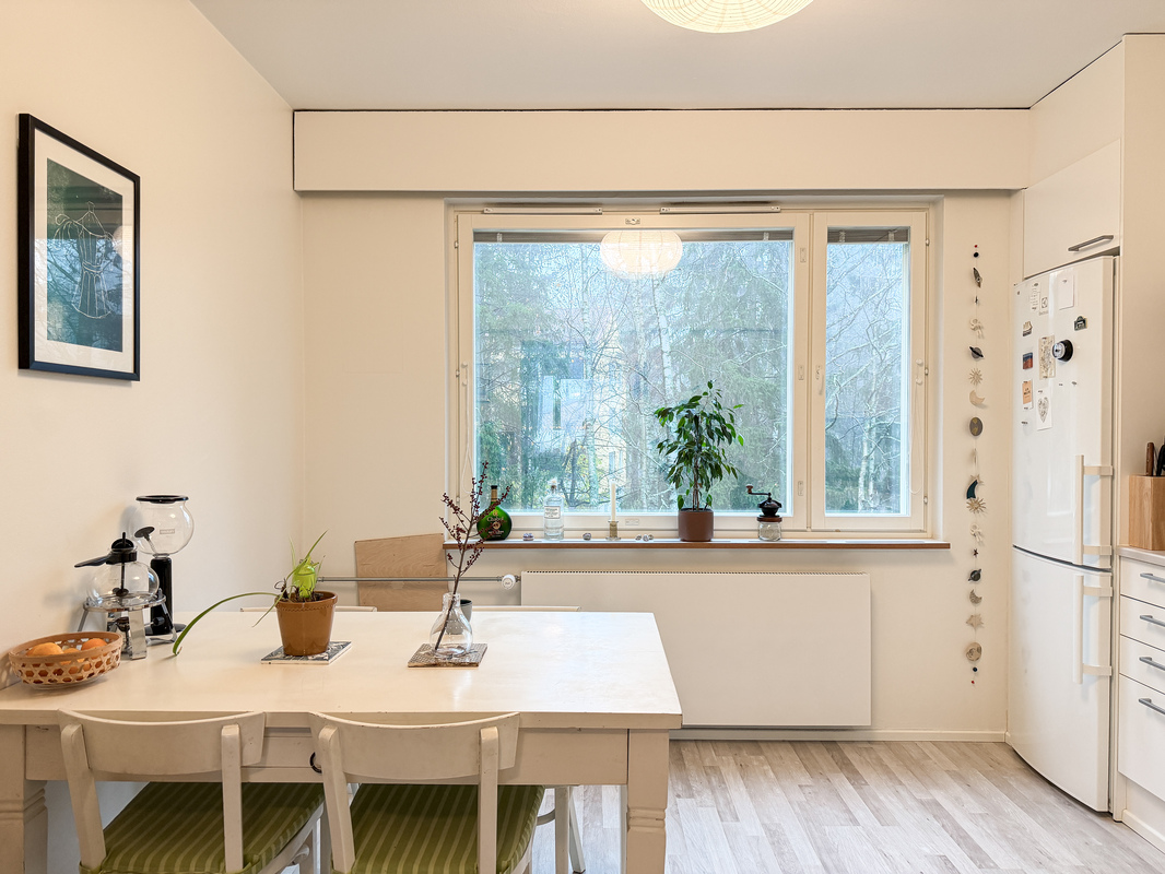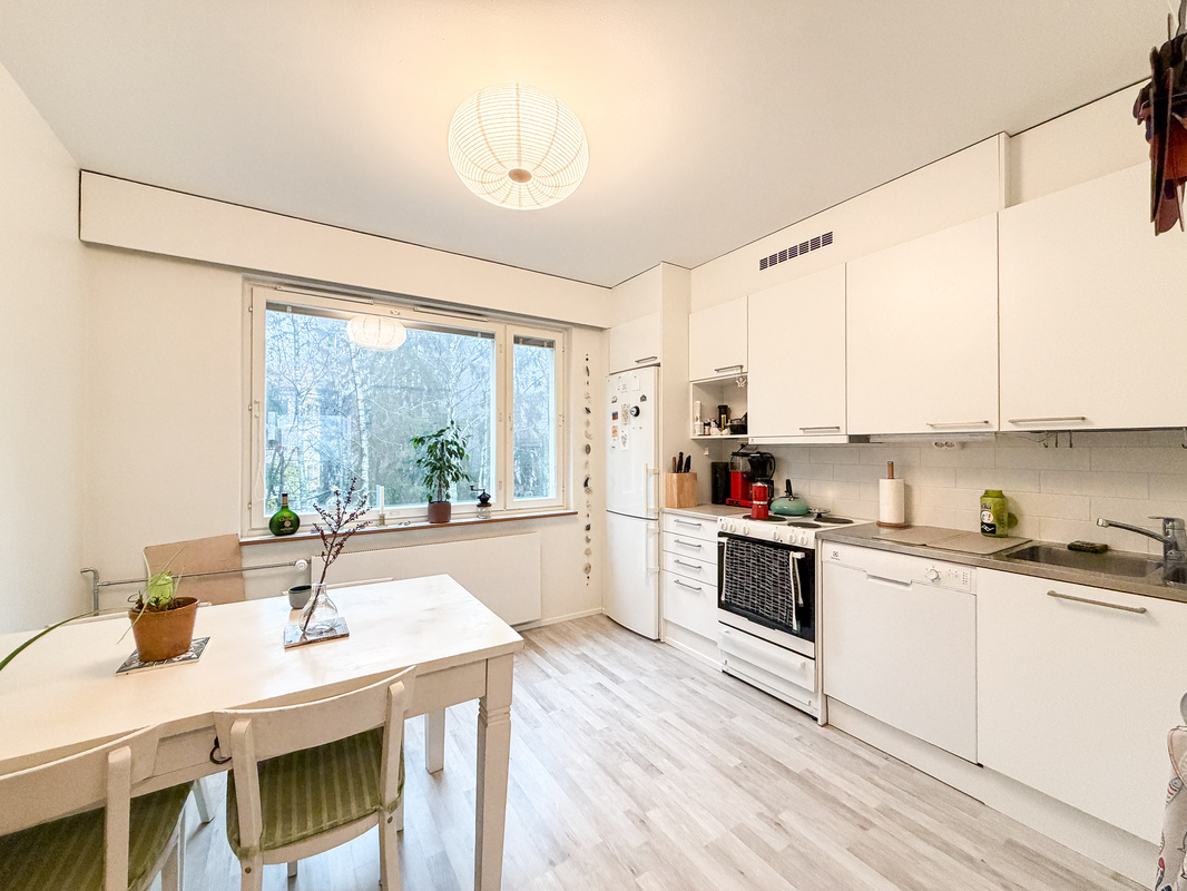 Tässä kodissa on toimiva pohjaratkaisu sekä tilavat huoneet. Keittiö on tilava ja tänne mahtuu hyvin myös keittiönpöytä. Lasku,- sekä kaappitilaa on hyvin ja kaikki tarvittavat varustelut löytyvät kuten astianpesukone.