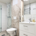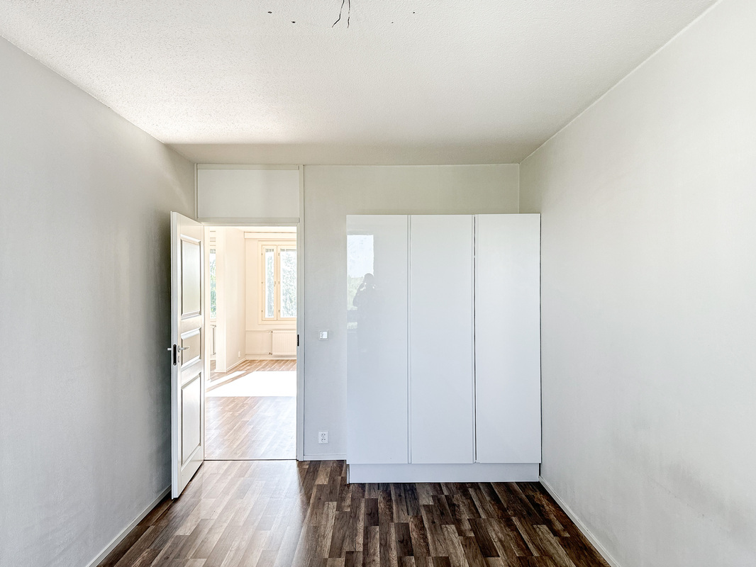 Makuuhuoneesta on kulku lasitetulle parvekkeelle, josta näkymät sisäpihan puolelle. Säilytystilaa löytyy niin makuuhuoneen puolelta, kuin myös tilavasta vaatehuoneesta. Kylpyhuoneeseen mahtuu hyvin oma pyykinpesukone ja pinnat on juuri kauttaaltaan remontoitu juuri valmistuneen putkiremontin yhteydessä.