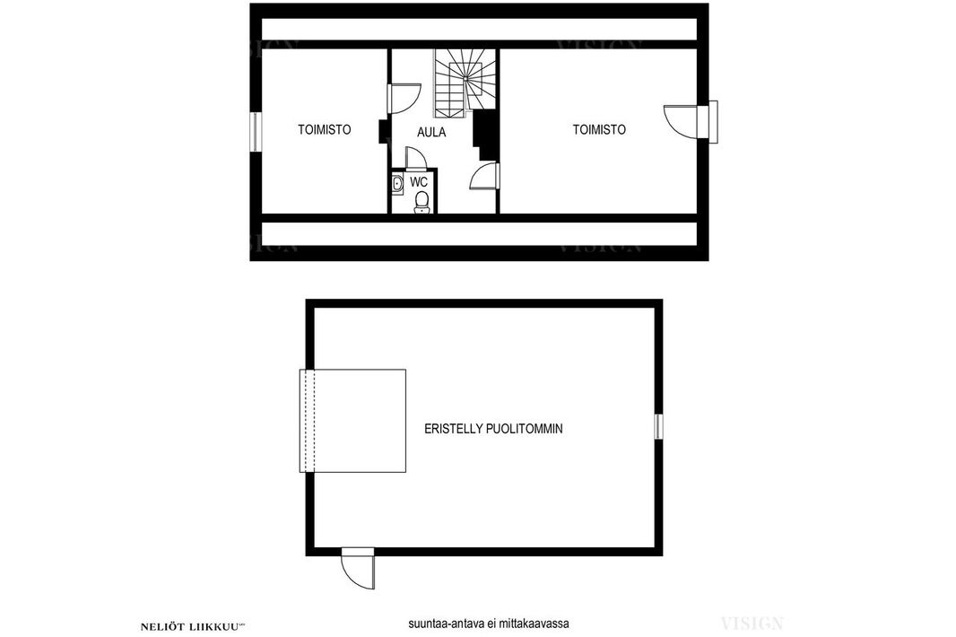 | Huoneistoselitelmä | toimistotila 2h+wc+erillinen varastorakennus 58m2 |