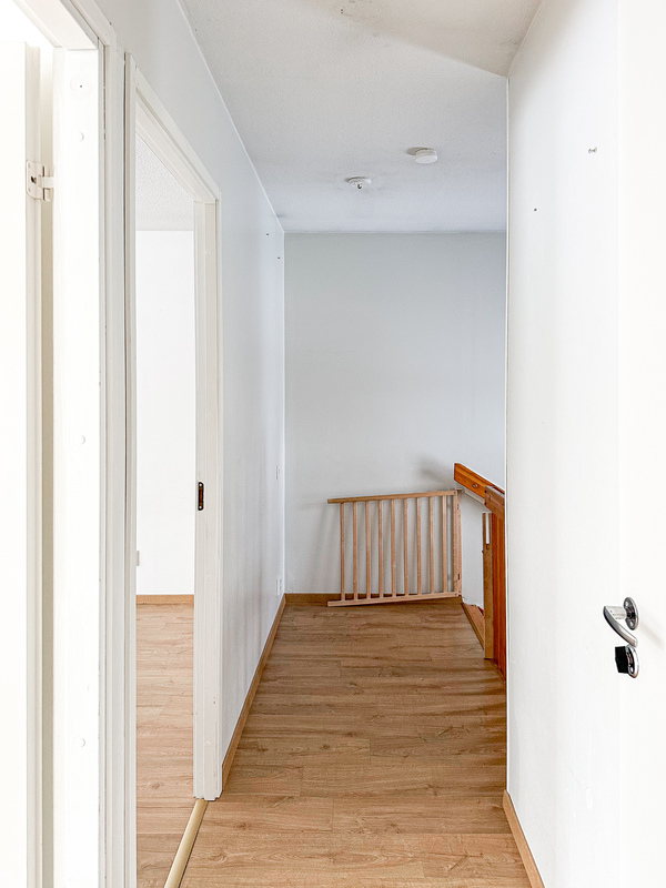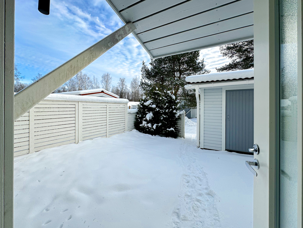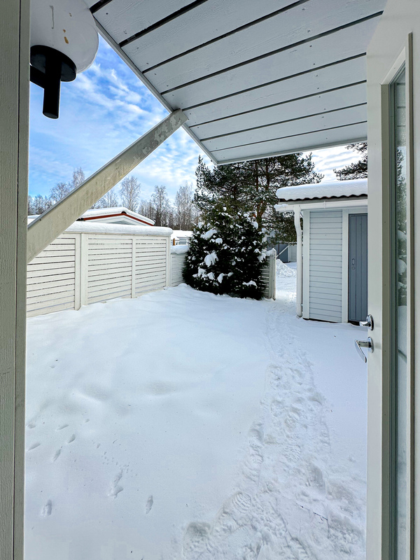 Yläkerrassa sijaitsevat makuuhuoneet sekä kylpyhuone ja sauna, jotka tuovat arkeen ripauksen mukavuutta. Erillinen wc helpottaa perheen päivittäisiä rutiineja. Oma pieni piha, jonka yhteydessä on varasto, mikä lisää asumisen käytännöllisyyttä.