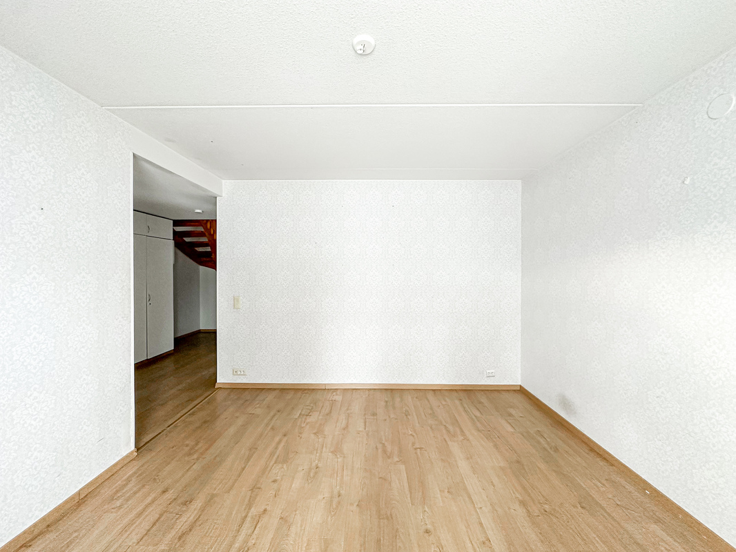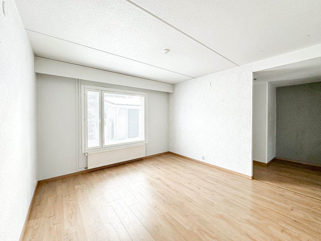 Pohjaratkaisu on toimiva ja neliöt on käytetty tehokkaasti. Valoisa olohuone avautuu omalle pihalle ja tarjoaa mukavasti tilaa oleskeluun. Tilava keittiö toimii kodin sydämenä, ja sinne mahtuu hyvin ruokapöytä tuoleineen yhteisiä hetkiä varten.
