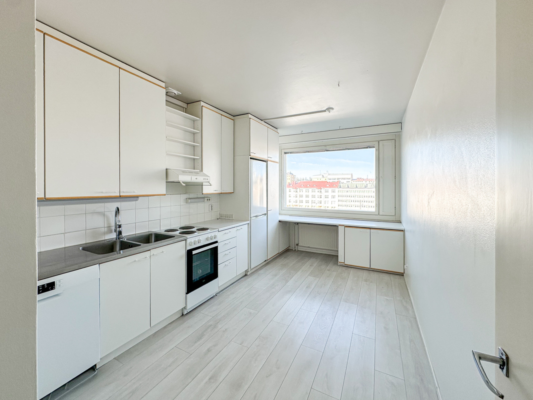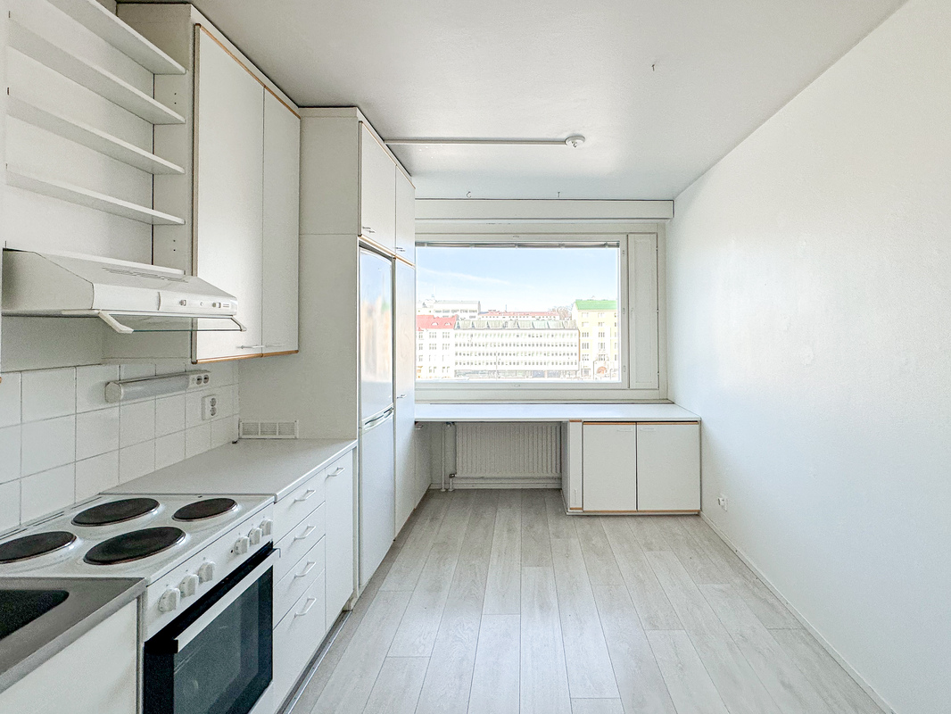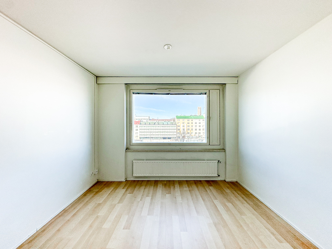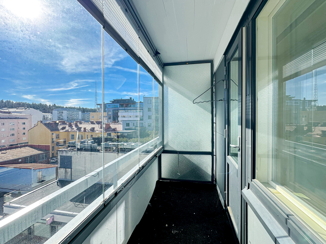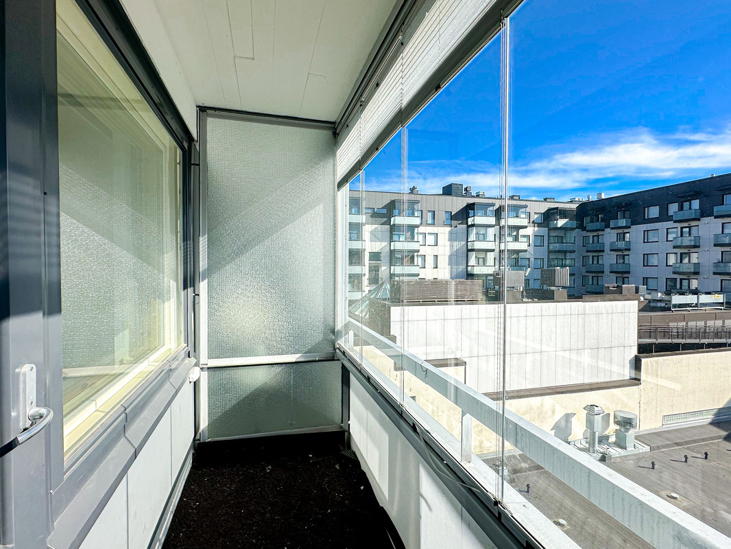 Hissitalon kuudennen kerroksen koti tarjoaa toimivaa keskusta asumista. Valoisa läpitalon pohjaratkaisu, jossa tilavat makuuhuoneet korkeilla kaapistoilla. Lisäksi säilytystilaa on eteisessä. Makuuhuoneen sekä keittiön ikkunoista on upeat näkymät suoraan torille. Keittiössä on hyvin tilaa ruokapöydälle ja kaappitilaa on runsaasti. Olohuone on suuri ja sinne mahtuu isompikin sohva ja lasitettu parveke on Radionmäen suuntaan.