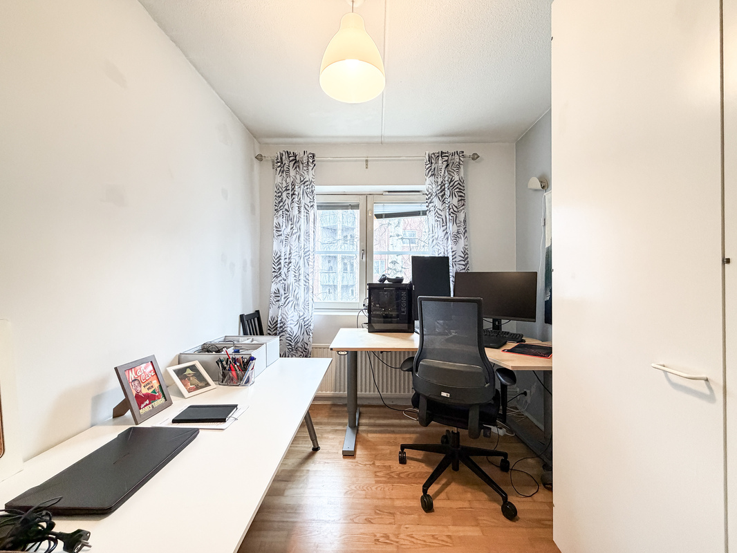 Makuuhuoneita on kaksi ja molemmista löytyy hyvin kaappitilaa. Tämän lisäksi eteisestä köytyy liukuovikaapisto sekä tilava vaatehuone. Säilytystilaa ei siis tästä asunnosta puutu!