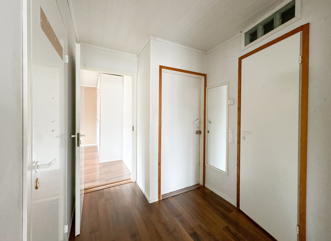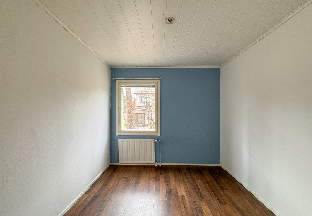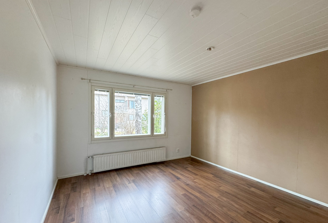 Makuuhuoneet ovat käytännölliset, ja toisessa niistä on erityisen hyvin säilytystilaa. Lisätilaa säilytykseen tuovat vuokralaisen käytössä olevat vintti- ja kellarikomerot. Kylpyhuoneessa on liitäntä pyykinpesukoneelle.