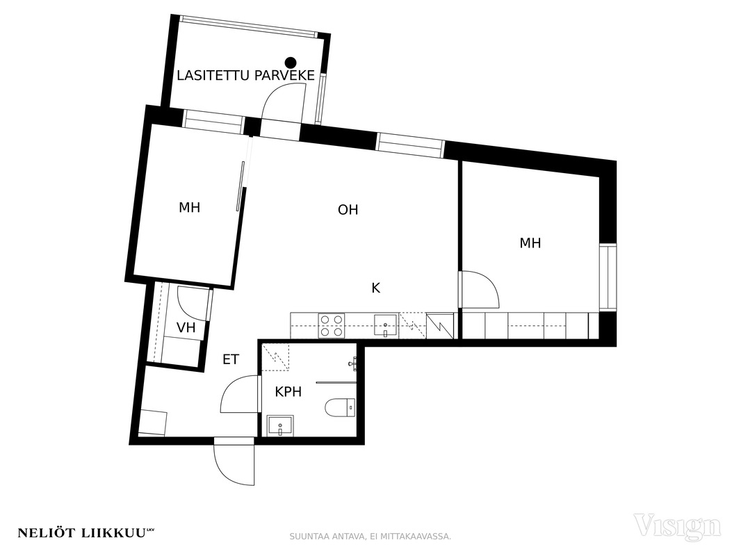 | Huoneita | Kolmio |
