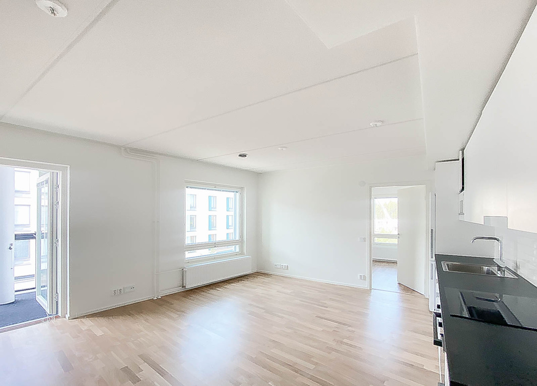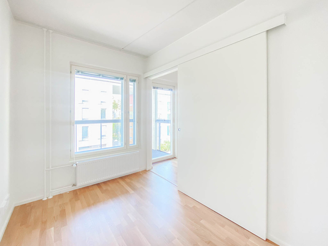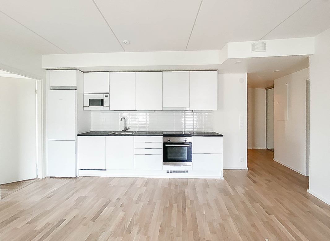 Tämä valoisa kokonaisuus tarjoaa laadukkaat puitteet asumiseen niin sijaintinsa, pohjaratkaisunsa kuin laadukkaiden materiaaliensa puolesta. Huoneisto aukeaa valoisaan olohuoneeseen ja makuuhuoneet sijoittuvat asunnon molemmin puolin. Avokeittiö tarjoaa puitteet vaativammankin kokkailijan makuun, sillä niin kaappi kuin laskutilaakin löytyy mukavasti sekä astianpesukone, keraaminen keittotaso, kalusteuuni ja integroitu mikroaaltouuni takaavat sujuvan arjen. Huoneiston kruununa toimii suuri lasitettu parveke, jossa kelpaa viettää aikaa aikaisin keväästä pitkälle syksyyn. Tilavaan kylpyhuoneeseen mahtuu mukavasti myös pesutorni ja materiaalivalinnat takaavat tyylikkään, viimeiseen yksityiskohtaan asti hiotun lopputuloksen.