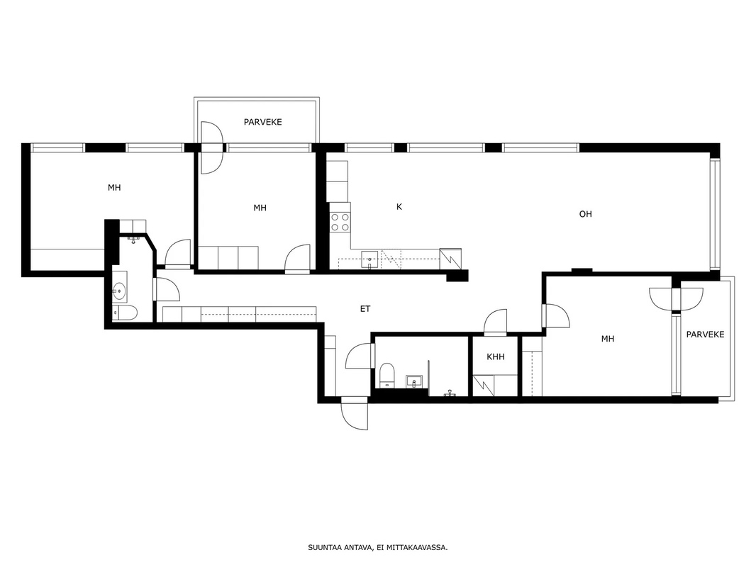 | Huoneistoselitelmä | 4h, avok, 2 x kph, khh, 2 x parveke |
