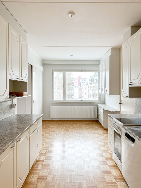 Hissitalon kolmannen kerroksen koti, jossa hyvin käytännöllinen pohjaratkaisu, joten koti sopii hyvin esimerkiksi perheelle tai kimppa-asumiseen. Kolme erillistä makuuhuonetta tarjoavat hyvät puitteet asumiseen, ja olohuoneesta on käynti lasitetulle parvekkeelle, joka tuo lisätilaa aikaisesta keväästä pitkälle syksyyn. Keittössä kivasti kaappi- sekä laskutilaa ja oma paikka ruokapöydälle tuoleineen.