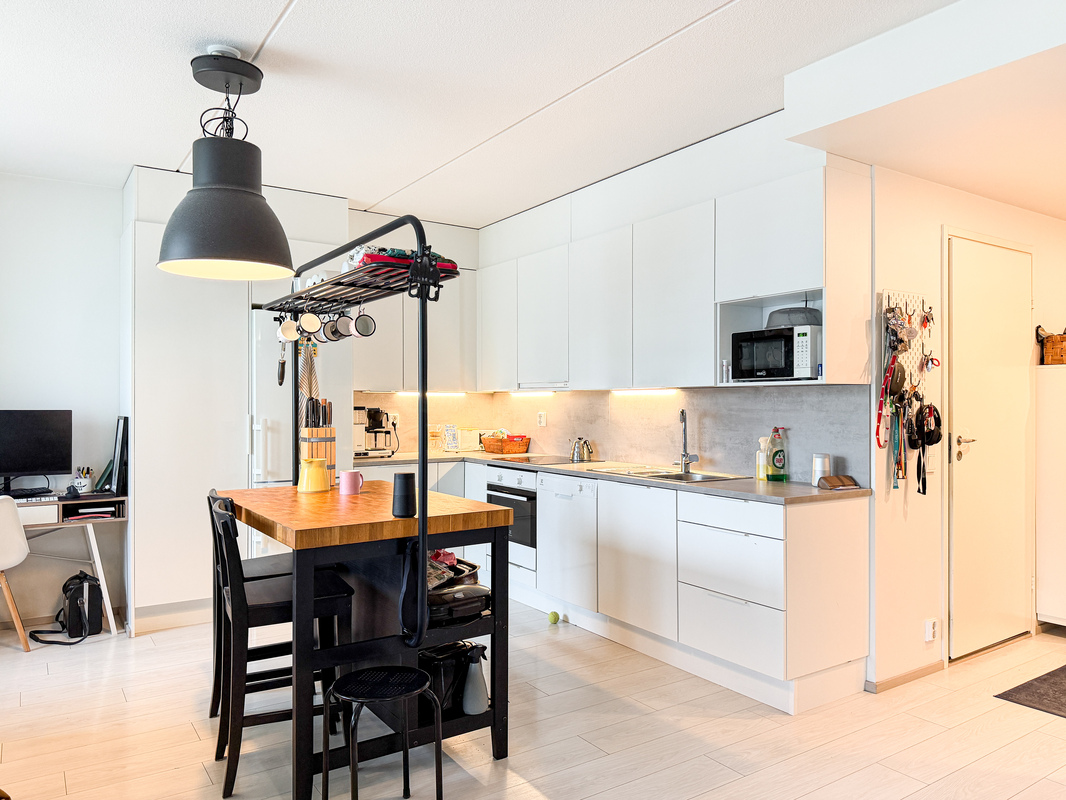 Kaunis koti 2019 valmistuneen kerrostalon neljännestä asuinkerroksesta. Pohjaratkaisu asunnossa on avara sillä keittiö yhdistyy oleskelutilaan mukavasti. Keittiöstä on kulku parvekkeelle, jonne mahtuu hyvin isommatkin parveke kalusteet. Makuuhuoneita on kolme, joista kaikista löytyy hyvin säilytystilaa. Kylpyhuone on moderni ja tämän kruunaa oma sauna!