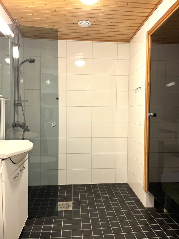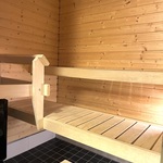 | Saunan kuvaus | Sähkökiuas. Seinät: paneeli. Lattia: laatta. Tumma lasiovi. |